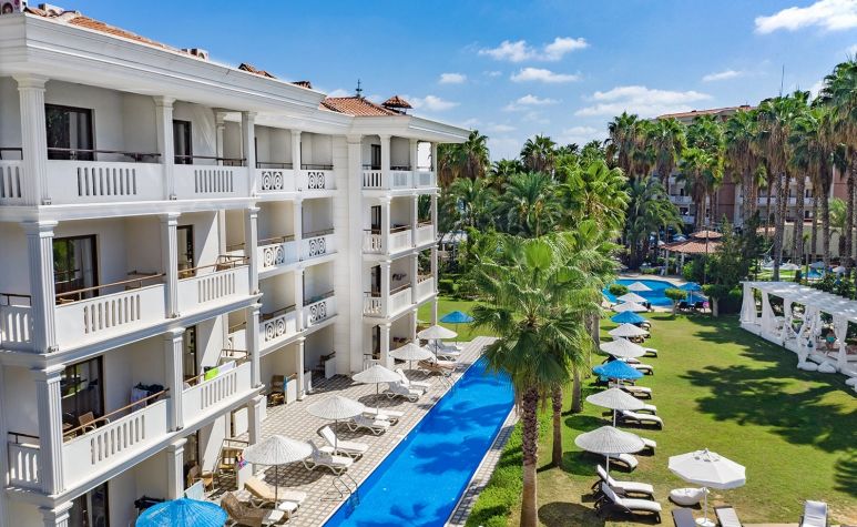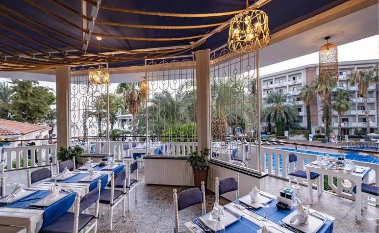 Намира се на 92 км от летище Анталия, на 99 км от центъра на Анталия, на 22 км от центъра на Алания, на брега на морето. Построен 1995 г., на обща площ от 54 000 м2. Реновиран 2021 г.