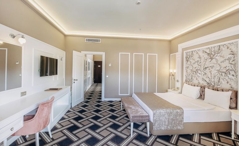 Хотелът разполага с общо 371 стаи, разположени в 1 основна сграда, 4 допълнителни сгради и 1 Residence сграда, от които Standard Garden View (с изглед градина - 26 м2), Standard Sea View (с частичен изглед море - 26 м2), Family Room (2 отделни спални, 1 баня - 43 м2), Residence Family Room (разположени в сграда Residence, 2 отделни спални, дневна, 1 баня - 49 м2).