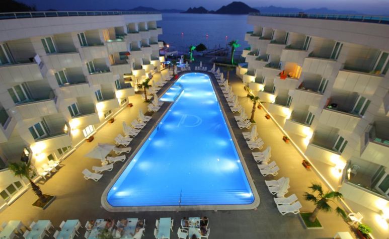 Намира се на 55 км от летище Бодрум, на 20 км от центъра на Бодрум, на 1 км от центъра на Тургутрейс, на брега на морето. Построен 2014 г., на обща площ от 10 000 m².