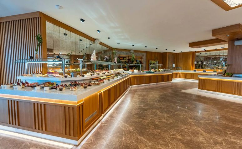 Основен ресторант, 3 а-ла-карт ресторанта (турски, италиански, рибен, с предварителна резервация и доплащане 20 евро/човек; Рибният а-ла-карт ресторант е с едно безплатно посещение при минимум 7 нощувки, а при по-малък брой нощувки се доплаща 20 евро/човек), 6 бара, 3 открити басейна, аквапарк, 2 закрити басейна (отопляеми, единият е за деца), паркинг.