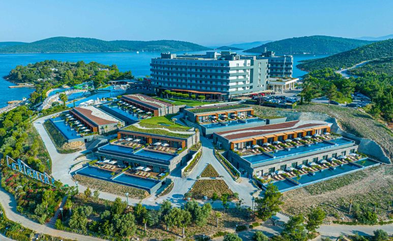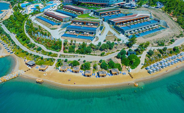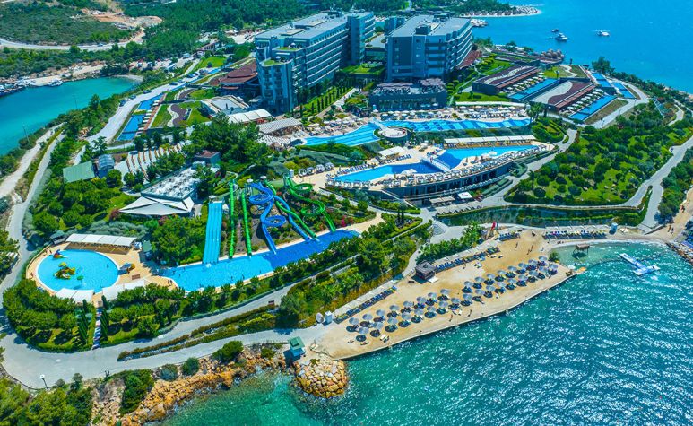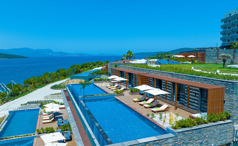 Намира се на 15 км. от летище Милас, на 26 км. от центъра на Бодрум, на 3 км от центъра на Гюверджинлик, на брега на морето. Построен през 2014г., на обща площ от 82 000 m². Реновиран през 2023/2024г. - ресторантите, общите части и подобрена Ultra All Inclusive концепция.