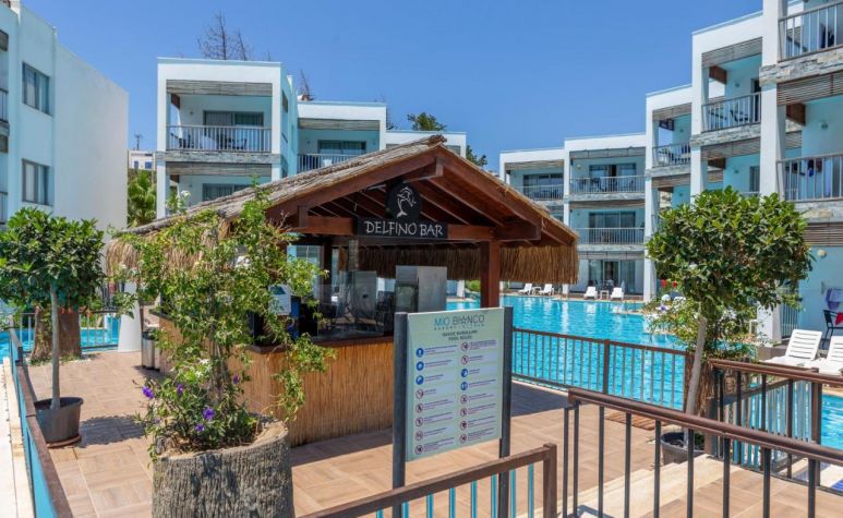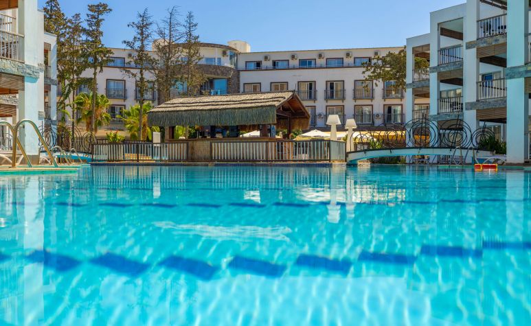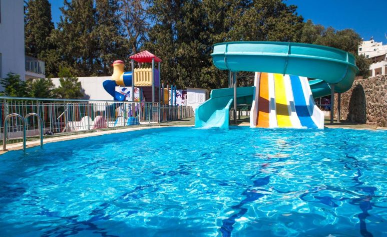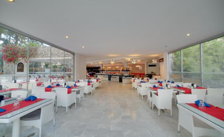 Основен ресторант, 1 бар, 2 открити басейнa, 2 водни пързалки, СПА център, магазини.