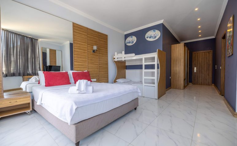 Standard land view (изглед суша, френски балкон - 26 м²), Standard room pool view (изглед басейн, френски балкон - 26 м²), Family room (изглед басейн, 1 спалня, всекидневна, балкон - 50 м²), Swim up family room (с директен достъп до общ басейн, 1 спалня, всекидневна, балкон - 50 м²), Family suite (изглед басейн, 2 спални, всекидневна, балкон - 60 м²), Family suite swim up (с директен достъп до общ басейн, 2 спални, всекидневна - 60 м²).