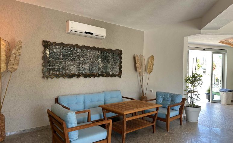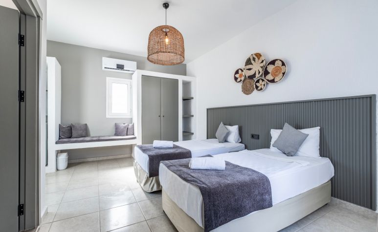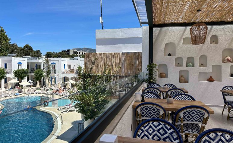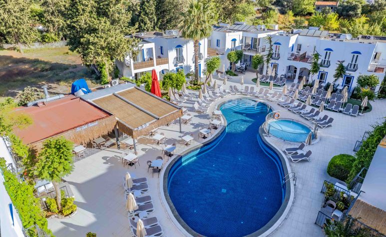 Намира се на 40 км от летище Бодрум, на 7 км от центъра на Бодрум, на 2 км от центъра на Гюмбет, район Битез, на 300 м от брега на морето. Построен 2001 г., на обща площ от 7.000 m². Реновиран 2024 г.