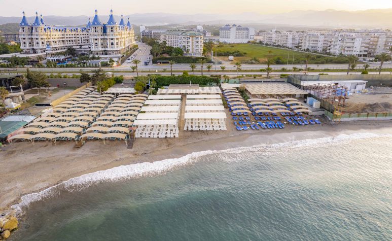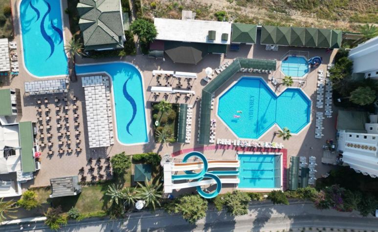 Намира се на 100 км от летище Анталия, на 110 км от центъра на Анталия, на 20 км от центъра на Алания, на 100 м от брега на морето. Построен 2003 г., на обща площ от 17 000 м2. Реновиран 2021 г.