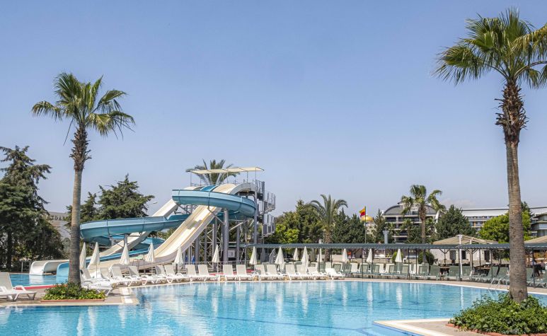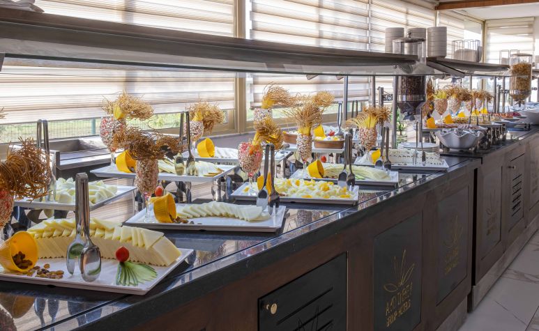 Основен ресторант, 3 а-ла-карт ресторанта (рибен, барбекю, италиански – 1 безплатно посещение на 1 от ресторантите при минимум 7 нощувки, с предварителна резервация), 2 снек ресторанта, сладкарница, 5 бара, 3 открити и 1 закрит басейн, 4 водни пързалки, СПА център, магазини, 2 конферентни зали.