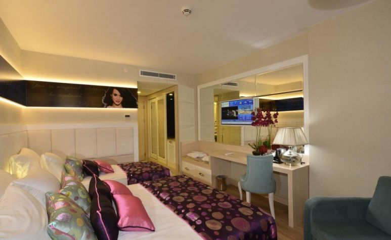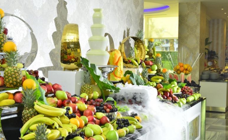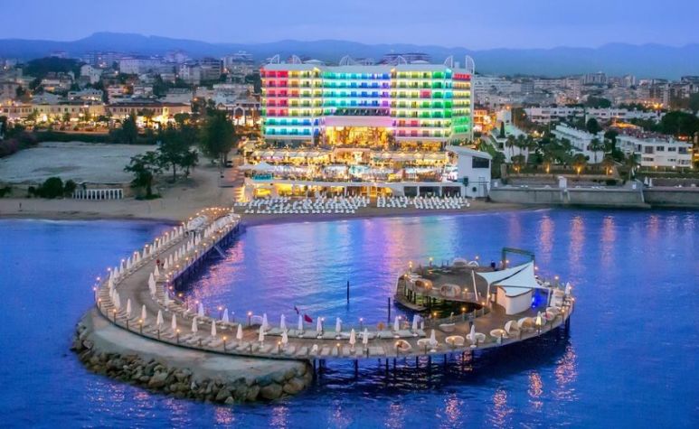 Основен ресторант, 2 а-ла-карт ресторанта (турски, италиански - с предварителна резервация), сладкарница, 5 бара (1 работещ 24 ч.), дискотека, открит и закрит басейн (отопляем през зимния сезон), 4 водни пързалки, СПА център, магазини, конферентна зала. ЗА ДЕЦАТА: Детско меню, открит и закрит детски басейн, детска площадка, мини клуб (4-12г.), детска анимация. БЕЗПЛАТНИ УСЛУГИ: Сауна, турска баня, парна баня, зона за релакс, аеробика, водна гимнастика, уроци по танци, тенис на маса, дартс, боча, анимация, жива музика, Wi-Fi (в Лоби). ПЛАТЕНИ УСЛУГИ: Масаж, пилинг, фризьор, химическо чистене, лекар, детегледачка, водни спортове, рент - а кар. ПЛАЖ: Собствен, пясъчно - чакълест. Чадъри, шезлонги и матраци на плажа и при басейна - безплатно. Плажни кърпи – срещу депозит.
