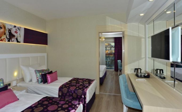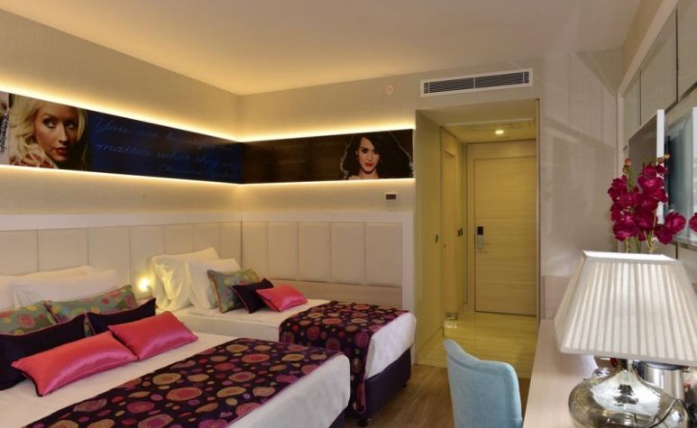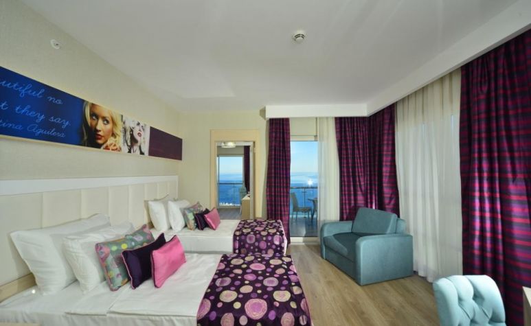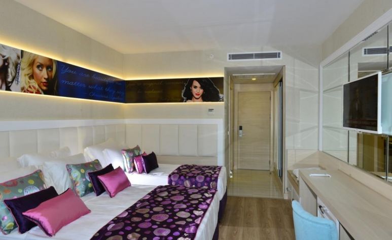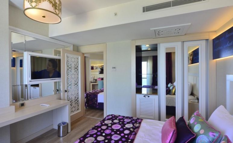 Хотелът разполага с общо 330 стаи, разположени в една 7-етажна основна сграда, от които 265 Deluxe room (с изглед суша или море - 30м2), 60 Family room (с изглед суша или море, 2 спални, 1 баня - 50 м2), 5 Deluxe fantasy room terrace with jacuzzi (1 спалня, джакузи на терасата - 58 м2). Всички стаи са оборудвани с климатик, телевизор, телефон, баня с душ, сешоар, сет за кафе/чай, минибар (безалкохолни напитки – безплатен, при пристигане), сейф (безплатен). Почистване на стаите и смяна на кърпите - всеки ден, смяна на спалното бельо - пъти в седмицата.