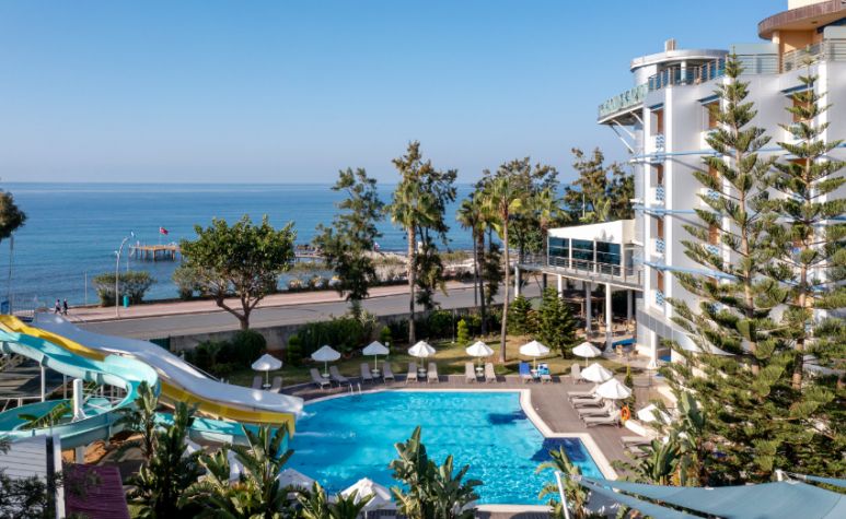 Хотелът се намира на 131 км. от летище Анталия, на 140 км. от центъра на Анталия, на 4 км. от центъра на Алания, та 50 м. от брега на морето. Построен през 1991г., с обща площ от 16 000 м2, реновиран през 2011 г.