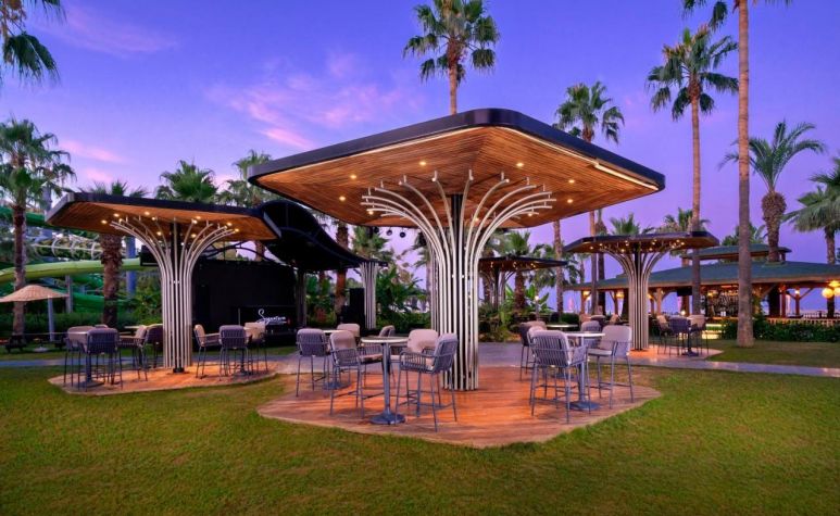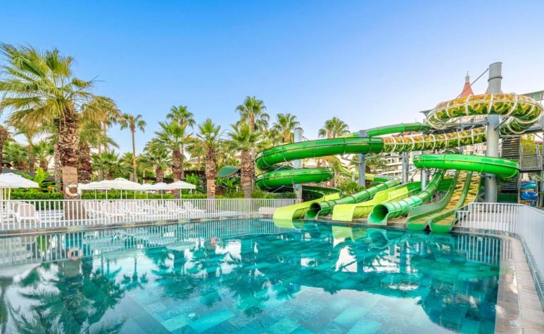 Основен ресторант, 3 а-лa-карт ресторанта – ( eдно безплатно посещение с предварителна резервация) турски, мексикански и японски-(платен), 6 бара,(1 от които работи 24 часа) дискотека, coffee corner, сладкарница, гьозлеме, основен басейн с 5 пързалки, водна кула с 3 пързалки, външен басейн с джакузи, вътрешен басей, магазини, SPA център, дискотека, 2 конферентни зали. За децата: Мини клуб (4-12 г.), детски басейн, детско меню, baby corner (24 часа), анимация. Безплатни услуги: турска баня, сауна, фитнес, плажен волейбол,зумба, аеробика, дартс, тенис на маса, тенис на корт, тенис ракети, баскетбол, волейбол, плажен волейбол. Платени услуги: масаж, аюрведа, грижи за кожата и тялото, фризьор, доктор, водни спортове, детегледачка, боулинг, билярд.