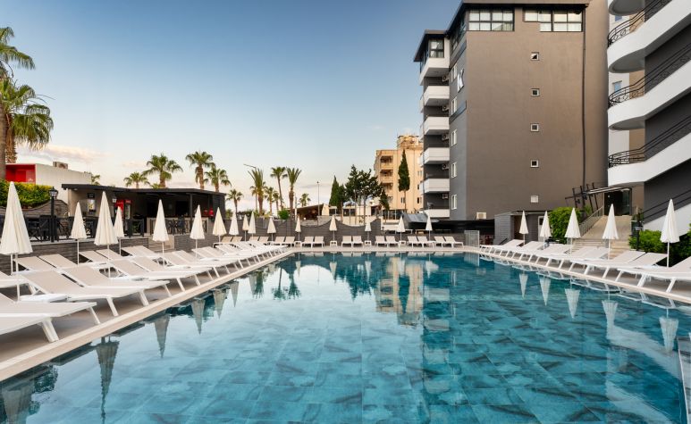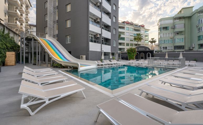 Намира се на 135 км. от летище Анталия, на 140 км. от центъра на Анталия, на 3 км. от центъра на Алания, на 250 м. от брега на морето. Построен е през 1999 г., с обща площ от 5.800 м2, реновиран през 2005 г.