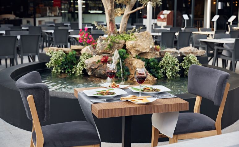 Основен ресторант, 5 бара, 3 открити басейна, водна пързалка, СПА център, конферентна зала. За децата: Детски басейн, детска площадка, мини клуб (4-12г.)