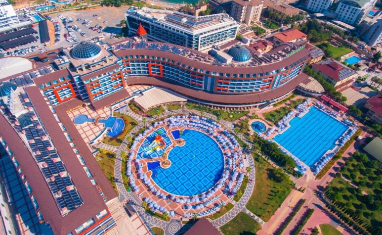 2 основни ресторанта,  рибен  а-ла-карт ресторант (платен с предварителна резервация), сладкарница, гьозлеме пекарна, сладоледена къща, 13 бара, coffee-house, 5 открити и 2 закрити басейна, аква парк ( 9 пързалки за възрастни и 10 деца), 3 конферентни зали, паркинг.
