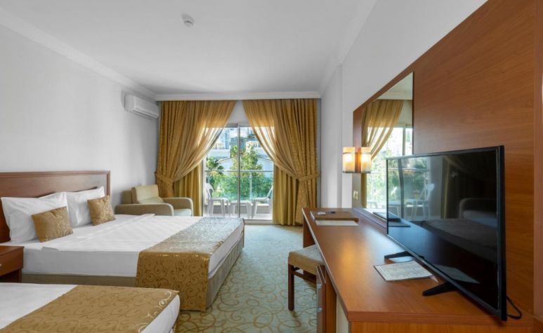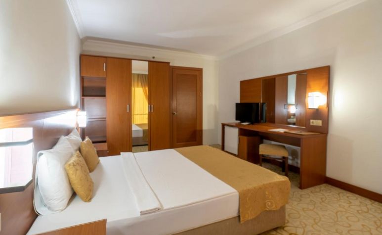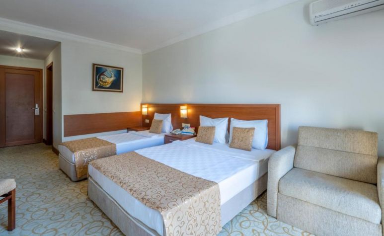 Хотелът разполага с общо 240 стаи, разположени в една 6-етажна основна сграда, от които 218 стандартни стаи Standard room (изглед суша Land view - 26 м2), 20 фамилни стаи Family room (2 спални, 1 баня – 42 м2), 2 стаи за инвалиди. Всички стаи са оборудвани с климатик, телевизор, телефон, баня с вана, сешоар, минибар (вода, безалкохолни напитки – само при пристигане), сейф (безплатен). Почистване на стаите – всеки ден, смяна на кърпите – при поискване, смяна на спалното бельо – 2 пъти в седмицата.