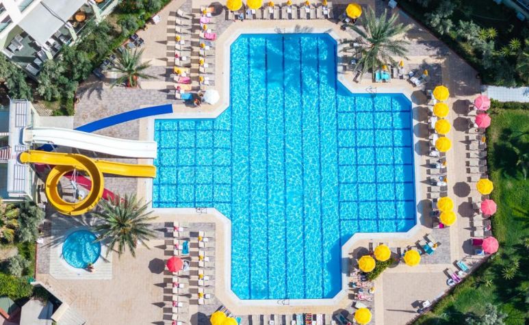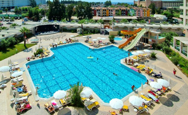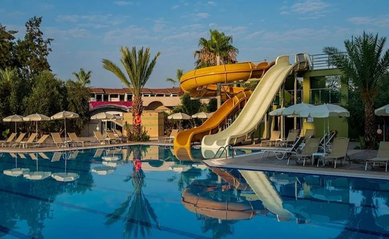 Основен ресторант, 3 бара, 1 открит басейн, 2 водни пързалки, 1 конферентна зала. За децата: Детски басейн, мини клуб (4-12), детска площадка. Безплатни услуги: Сауна, турска баня, фитнес, лека анимация, гимнастика, тенис на маса, дартс, водно полo. Платени услуги: Масаж, фотограф, химическо чистене, магазини, лекар, водни спортове, рент-а-кар, интернет.