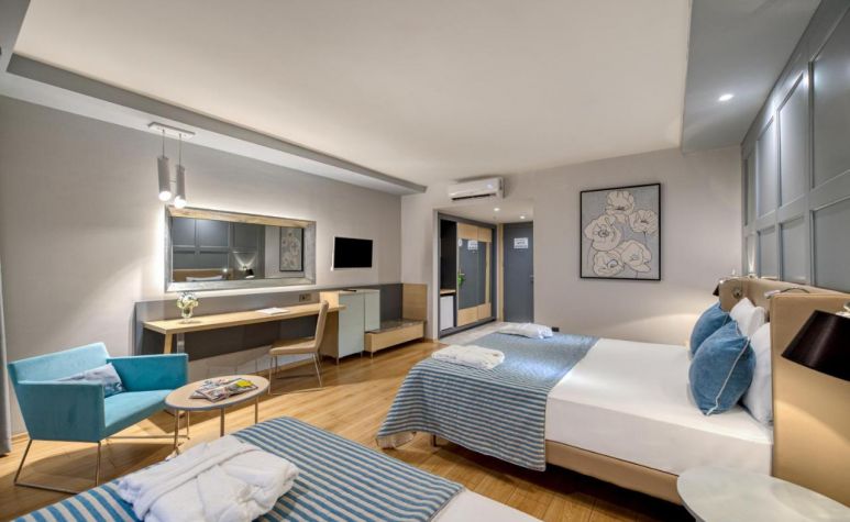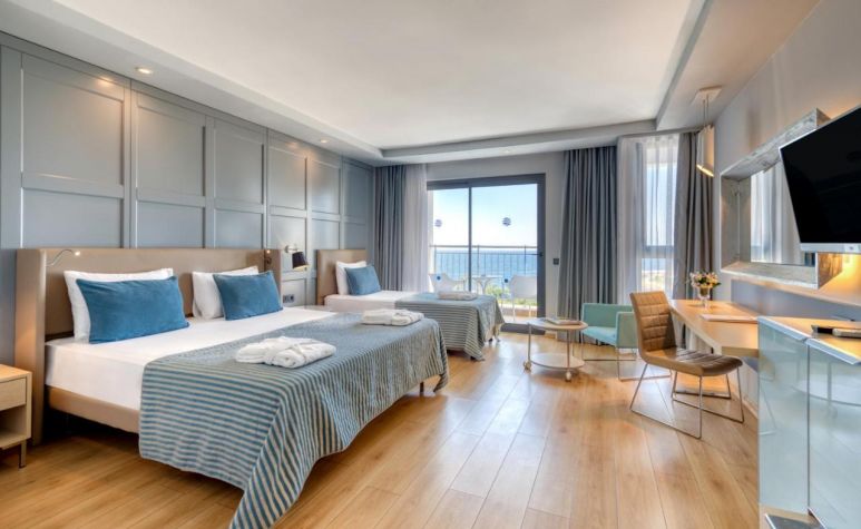 Хотелът разполага с общо 335 стаи, разположени в 9-етажна основна сграда, от които 125 Standard land view room (изглед суша, 28 - 30 м2), 60 Standard side sea view room (частичен изглед море, 28 - 30 м2), 82 Standard sea view room (директен изглед море, 28 - 30 м2),  10 Superior room (28 - 30 м2), 48 Family room (2 спални, 1 баня – 40 - 45 м2), 3 Swim Up room (с достъп до общ басейн – 28-30 м2),  7 Swim Up Dublex room (с достъп до общ басейн, 2 спални, 1 баня – 45 - 52 м2).