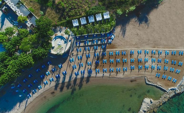 Собствен, пясъчно-чакълест. Чадъри и шезлонги на плажа и при басейна - безплатно. Плажни кърпи – срещу депозит.