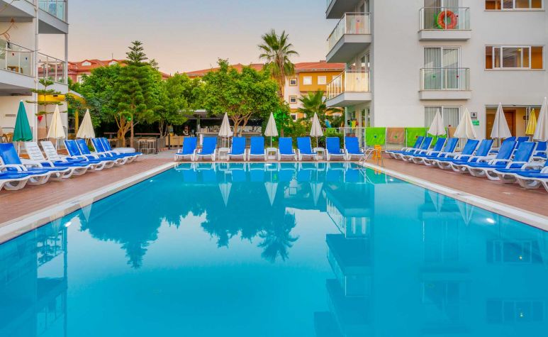 Намира се на 116 км от летище Анталия, на 126 км от центъра на Анталия, на 12 км от центъра на Алания, на брега на морето. Построен 1997 г., на обща площ от 10 000 м2. Частично реновиран 2019 и 2022 г.