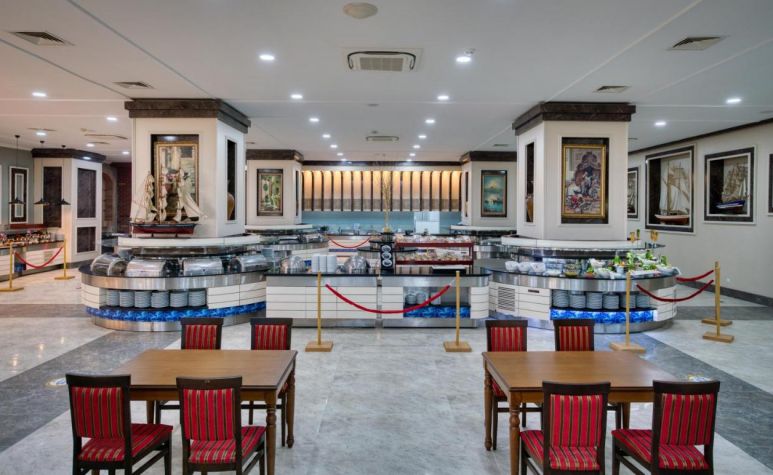 Хотелът разполага с основен ресторант, 2 а-ла-карт ресторанта (турски и рибен-съгласно концепцията), 5 бара, дискотека, открит и закрит басейн, 3 водни пързалки, СПА център, фитнес, конферентни зали, паркинг.