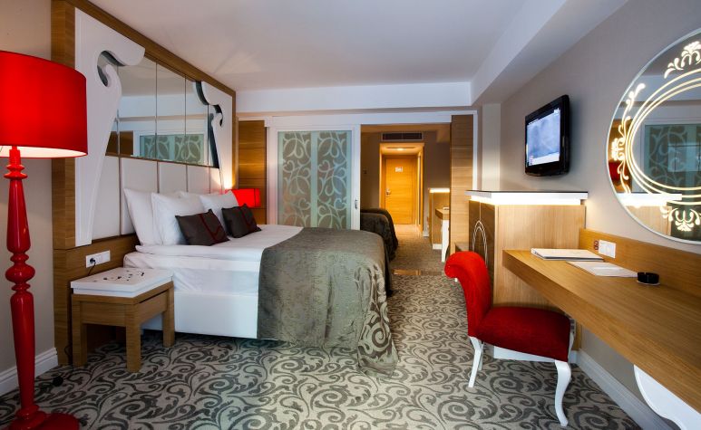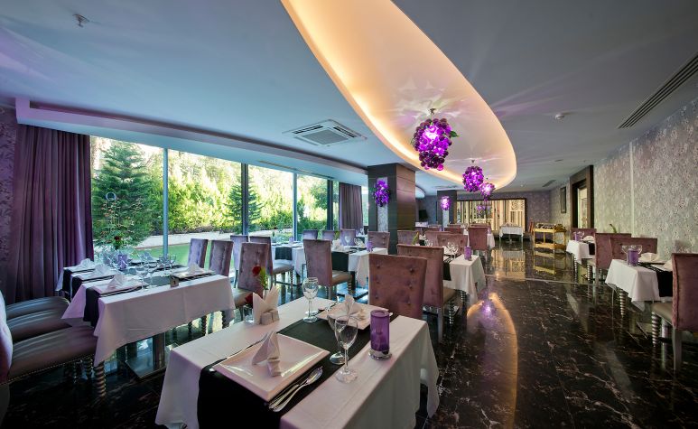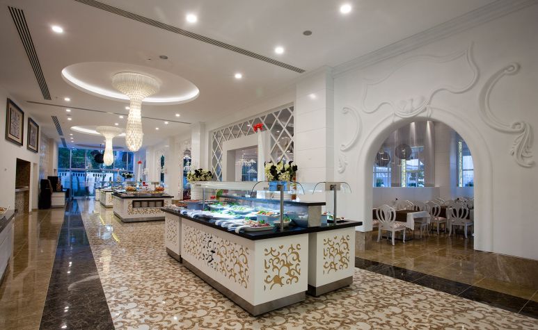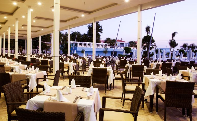 Основен ресторант, 2 а-ла-карт ресторанта (италиански и турски, 1 безплатно посещение на 1 от ресторантите при минимум 7 нощувки), 5 бара, 2 открити и 1 закрит басейн, 2 водни пързалки, СПА център.