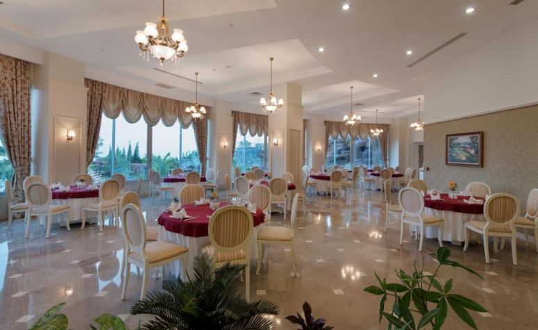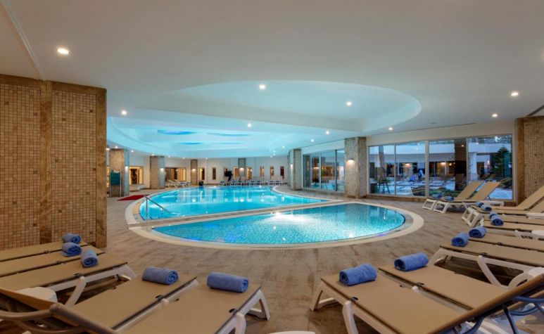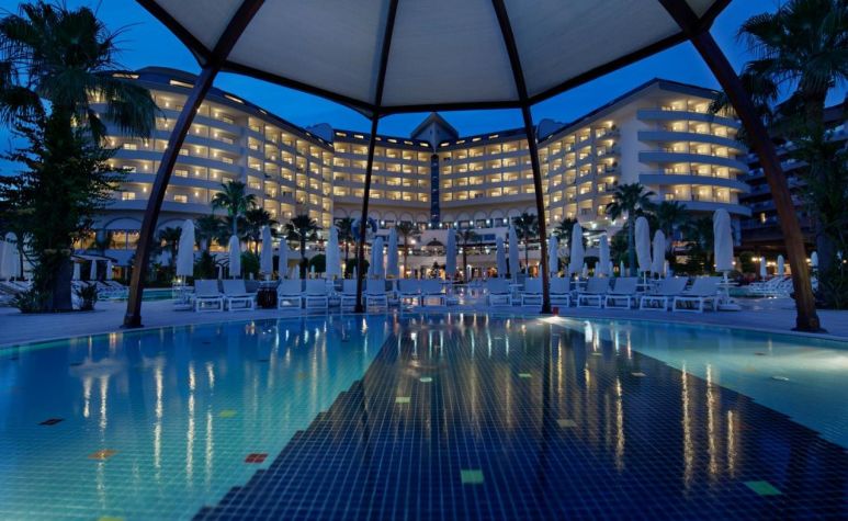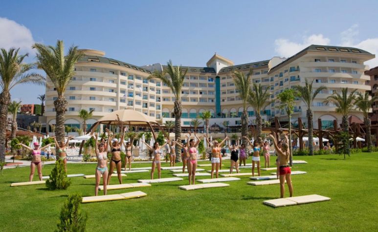Основен ресторант, 2 а - ла - карт ресторанта, 6 бара, 3 басейна, аквапарк. За децата: детски басейн, аквапарк, анимация Безплатни услуги: сауна, турска баня, фитнес, аеробика, мини клуб, мини - футбол, дискотека - напитки платено, безжичен интернет в лоби бар, баскетбол, сейф, дартс. Платени услуги: масаж, детегледачка, осветление тенис корт, билярд, уроци по тенис, водни спортове, фризьор, Интернет кафе, мини футбол, център за красота, СПА-център, билярд. Плаж: Пясъчно - чакълест. Плажни чадъри, матраци и шезлонги – безплатно.