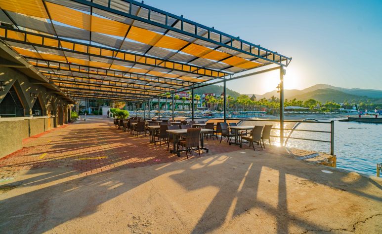 Основен ресторант, 1 а-ла-карт ресторант (рибен–1 безплатно посещение при минимум 7 нощувки), гьозлеме, снек ресторант, 7 бара, 2 открити басейна, водни пързалки, СПА център.