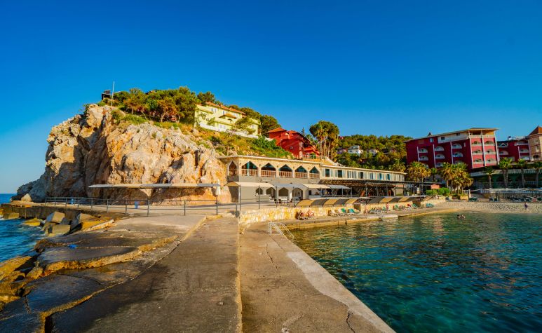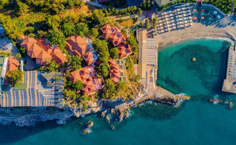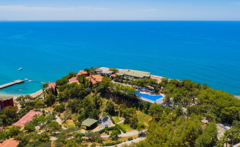 Намира се на 115 км от летище Анталия, на 125 км от центъра на Анталия, на 8 км от центъра на Алания, на хълм над брега на морето. Построен 1993 г. Реновиран 2020 г.
