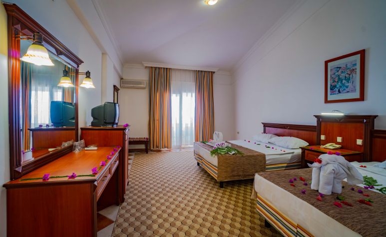 Хотелът разполага с общо 398 стаи, разположени в дву и три етажни сгради, от които Standard room (30 м2), 120 Family room (2 спални, 1 баня - 42 м2).