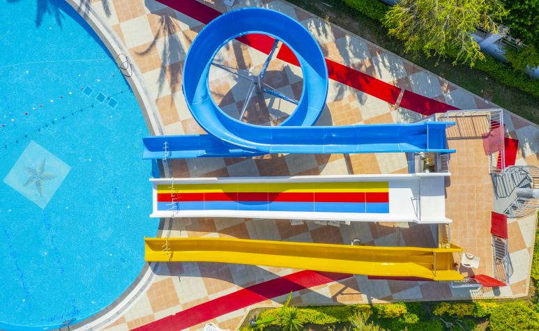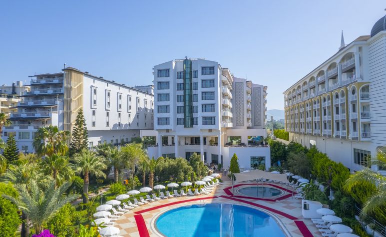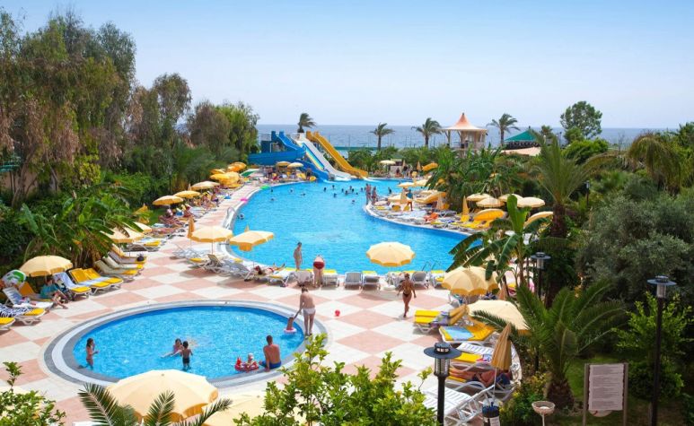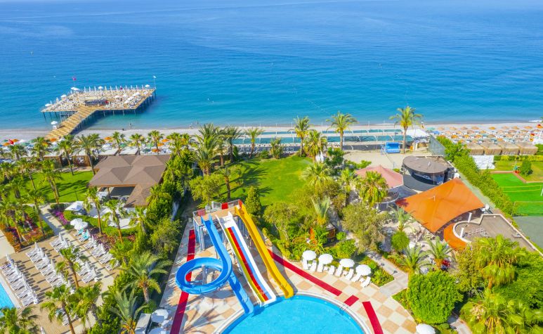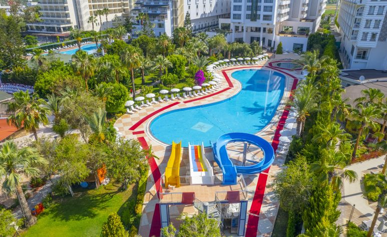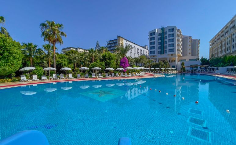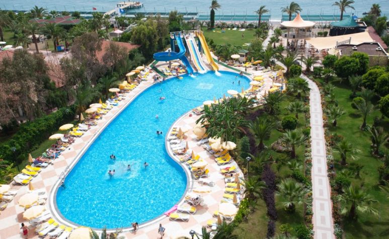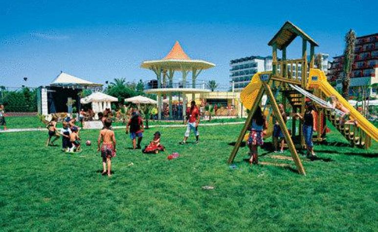 Основен ресторант, 2 а-ла-карт ресторанта (турски и италиански  - 1 безплатно посещение на един от ресторантите - с предварителна резервация), 2 бара, открит и закрит басейн, 3 водни пързалки, магазини, дискотека (напитките се заплащат). За децата: детска площадка, детски басейн, мини-клуб(4-12г.) Безплатни услуги: Турска баня, фитнес, тенис на маса, софт анимация, WiFi (на лоби). Платени услуги: Сауна, масаж, джакузи, билярд, телефон, водни спортове, лекар, магазини, център за красота, химическо чистене.