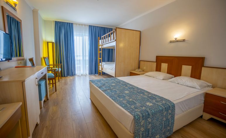 Хотелът разполага с общо 247 стаи, от които 177 стандартни, 60 фамилни и 10 апартамента. Всички стаи са оборудвани с климатик, телевизор, телефон, баня с душ, сешоар, минибар, сейф (платен и балкон.