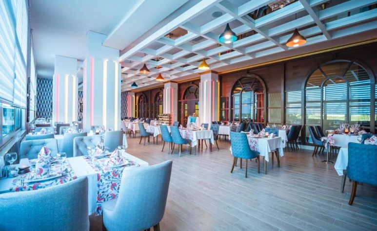 Основен ресторант, 2 а-ла-карт ресторанта (турски, средиземноморски – 1 безплатно посещение на 1 от ресторантите при минимум 7 нощувки), 2 снек ресторанта, сладкарница, 6 бара, 2 открити и 1 закрит басейн, водни пързалки, амфитеатър, СПА център, дискотека, магазини, 2 конферентни зали.