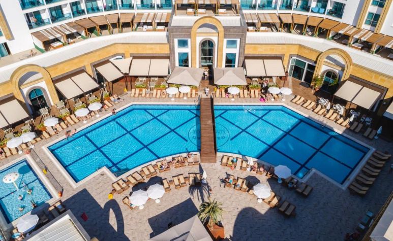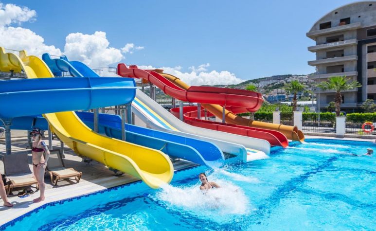 Намира се на 155 км от летище Анталия, на  170 км от центъра на Анталия, на 15 км от центъра на Алания, на 150 м  от  брега на морето. Построен 2016 г., на обща площ от 12 000 м2.