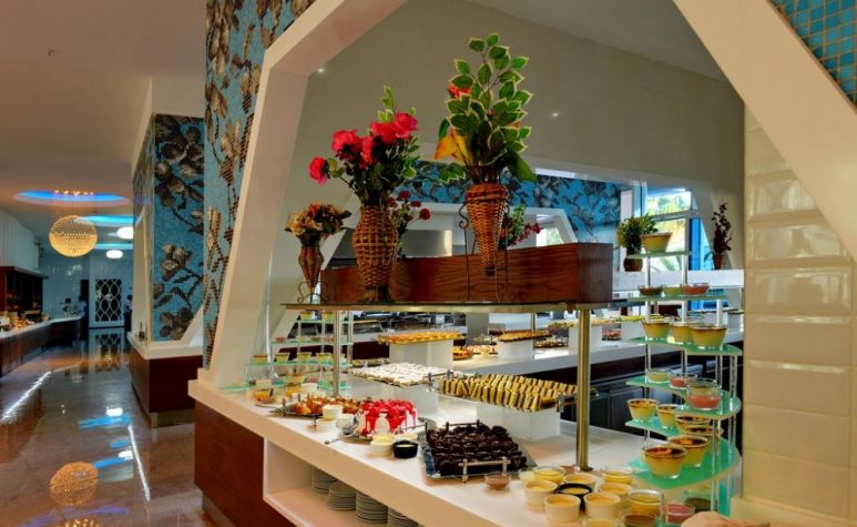 Основен ресторант, 3 а-ла-карт ресторанта (турски, италиански, азиатски – безплатно посещение на един от тях, при минимум 7 нощувки - с предварителна резервация), 5 бара, дискотека, открит и закрит басейн (през зимния сезон), 6 водни пързалки, СПА център, магазини, 3 конферентни зали. ЗА ДЕЦАТА: Детски меню, детски басейн, детска площадка, бейби клуб (0-3г.), мини клуб (4-12г.), мини диско. БЕЗПЛАТНИ УСЛУГИ: Сауна, турска баня, парна баня, фитнес, аеробика, пилатес, тенис на маса, тенис корт, дартс, мини кино, анимация, тематични вечери. ПЛАТЕНИ УСЛУГИ: Масаж, пилинг, фризьор, химическо чистене, лекар, детегледачка, оборудване и осветление за тенис корт, център за игри, билярд, водни спортове, рент - а кар, Wi-Fi интернет. ПЛАЖ: На 150 м. от хотела (минава се през надлез), собствен, пясъчно - чакълест. Чадъри, шезлонги, матраци и плажни кърпи на плажа и при басейна - безплатно.