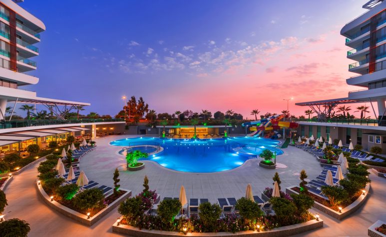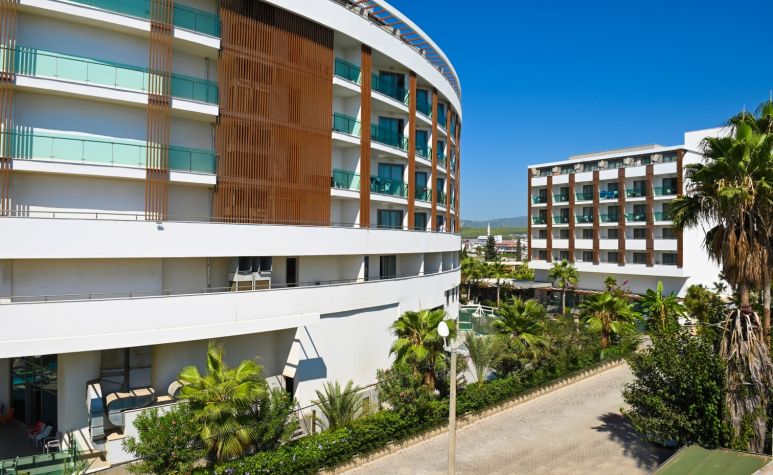 Намира се на 115 км от летище Анталия, на 120 км от центъра на Анталия, на 15 км от центъра на Алания, на 50 м от брега на морето (през път). Построен 2017 г., на обща площ от 11 000 м2.