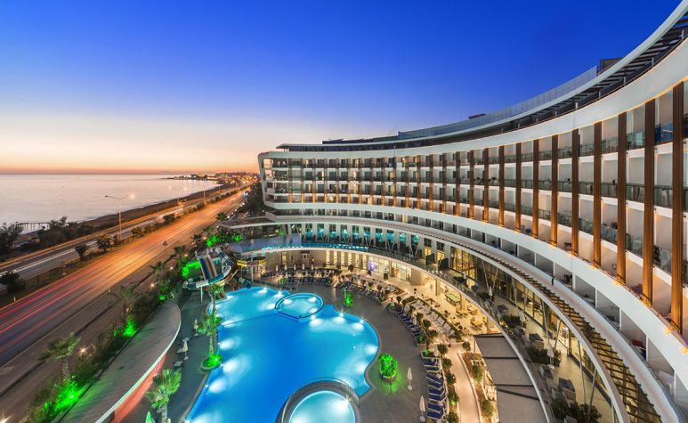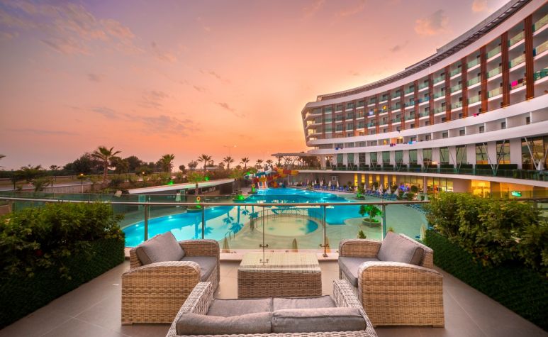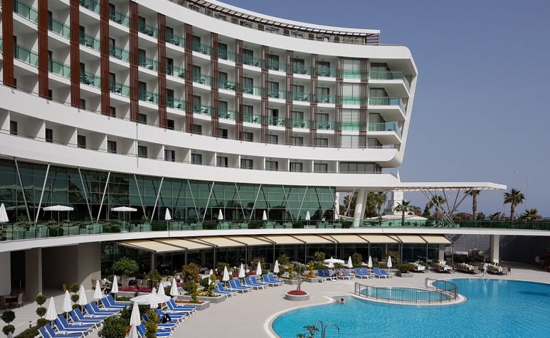 Основен ресторант, 1 а-ла-карт ресторант (рибен/турски – 1 безплатно посещение при минимум 7 нощувки), снек ресторант, сладкарница, 5 бара, 2 открити и 1 закрит басейн, аквапарк, амфитеатър, СПА център, 2 конферентни зали.