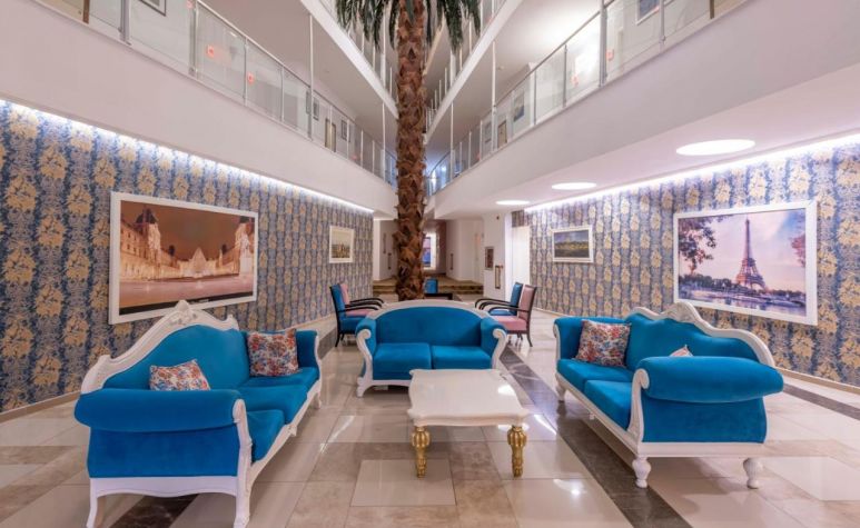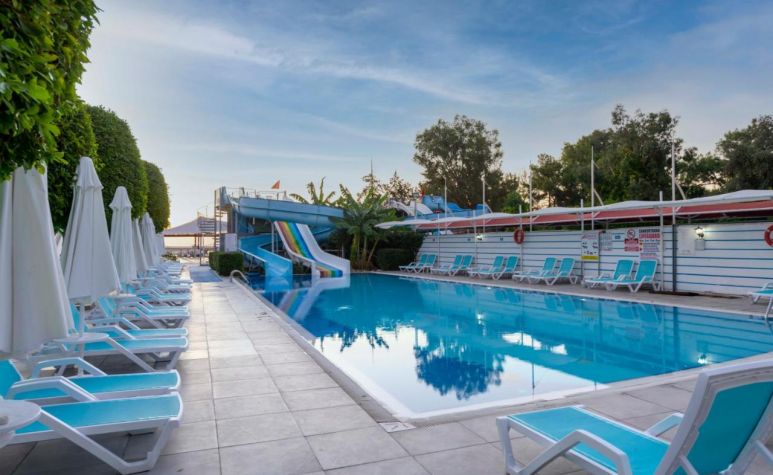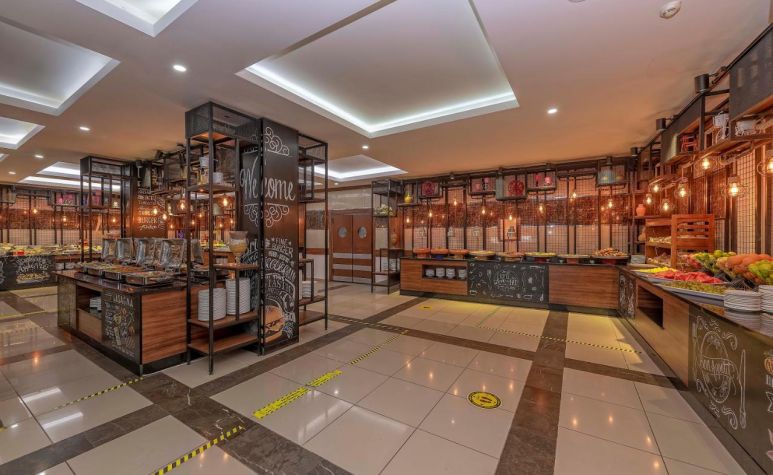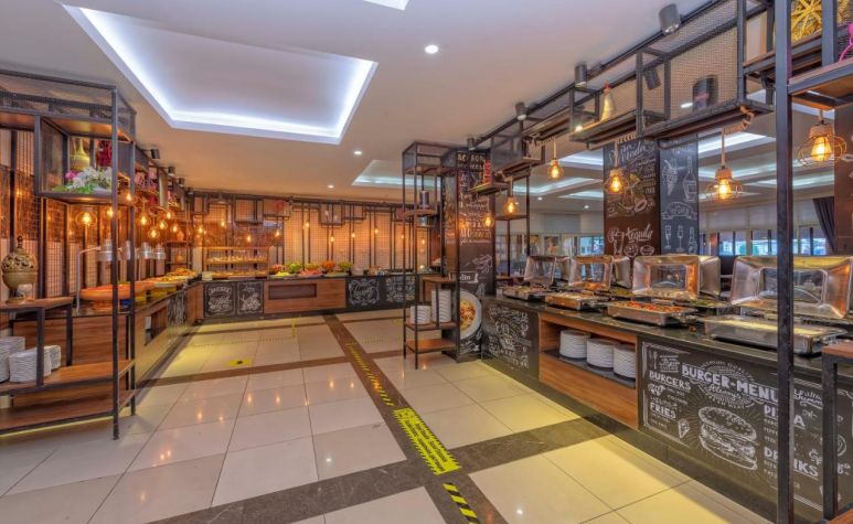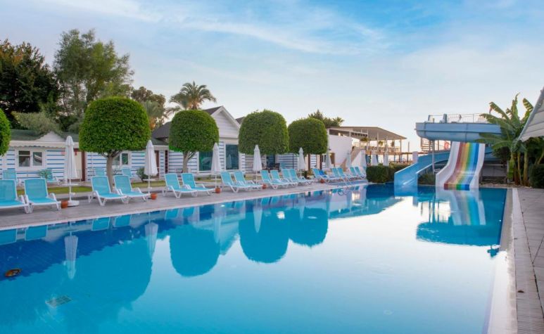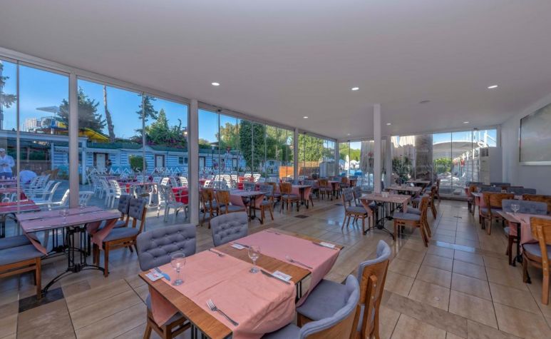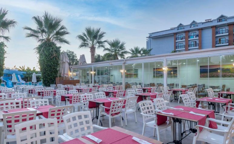 Основен ресторант, а-ла-карт ресторант (с предварителна резервация), 2 бара, аквапарк, 2 водни пързалки, открит басейн, 1 конферентна зала. За децата: детска площадка, мини клуб(4-12г.), анимация. Безплатни услуги: Турска баня, сауна, дартс, тенис на маса, аеробика. Платени услуги: масаж, телефон, водни спортове, сейф, WiFi интернет.