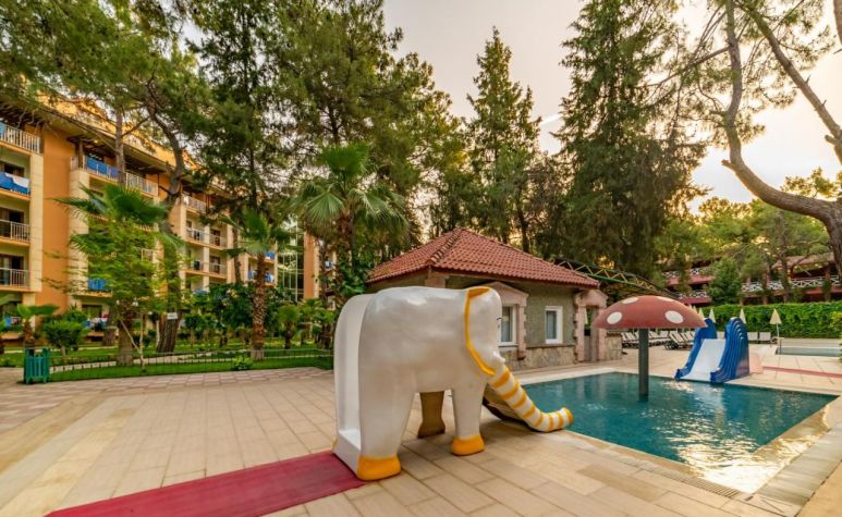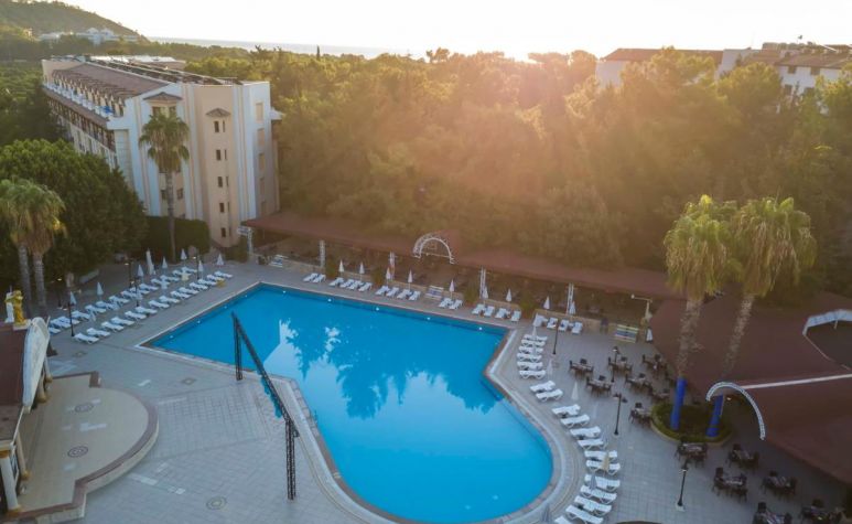 Хотелът се намира 70 км. от летище Анталия, на 17 км. от центъра на Кемер, в курортния град Текирова, на 300 м. от брега на морето. Основната сграда е построена през 1996 г., корпус Annex през 2005 г.; обща площ 36 000 м2, последно реновирани през 2014 г.