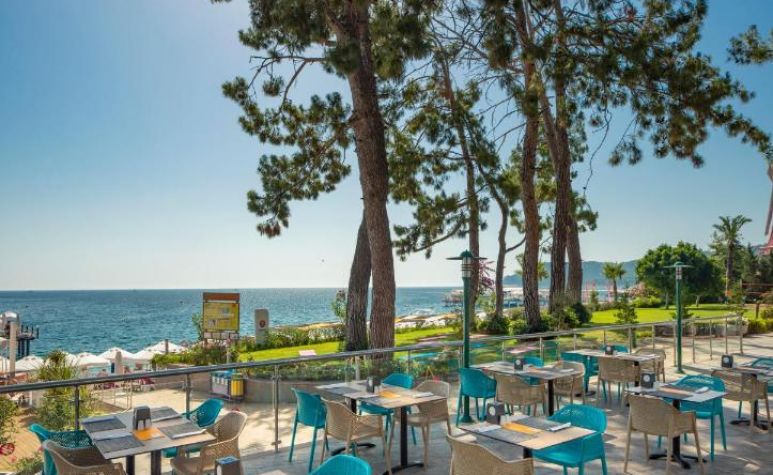 Намира се 55 км. от летище Анталия, на 45 км. от центъра на Анталия и на 600 м. от центъра на Кемер на брега на морето. Построен през 2003г. с обща площ 30 000 м2. последно реновиран през 2023г.