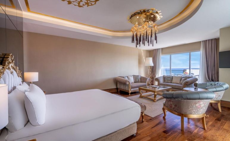 Основен ресторант, 4 а-ла-карт ресторанта(с предварителна резервация), 4 бара, 2 конферентни зали, 1 открит басейн, 1 закрит басейн, 3 водни пързалки, 2 тенис корта, център за таласотерапия, салон за красота, СПА център За децата: мини клуб (4-12 г.), детегледачка (доп.заплащане), детска площадка. Безплатни услуги: турска баня, фитнес център, анимация, закрит басейн Платени услуги: фризьор, масаж, салон за красота Плаж: Собствен чакълест. Чадъри, шезлонги, матраци и плажни кърпи - безплатни.
