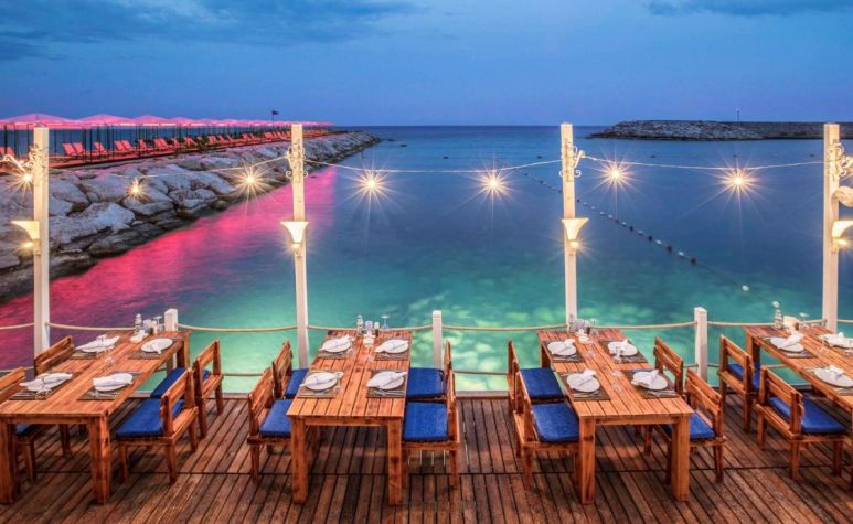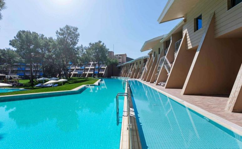 3 основни ресторанта, 9 а-ла-карт ресторанта (с предварителна резервация), 20 бара, дискотека, открити и закрити басейни, водни пързалки, аквапарк, магазини, SPA център, конферентен център. За децата: Детски ресторант, детски клуб, детски басейни, водни пързалки, детски аквапарк, мини дискотека, анимация. Безплатни услуги: Турска баня, сауна, фитнес, дартс, билярд, шахмат, тенис на маса, плажен волейбол, футбол, баскетбол, аеробика, мини-голф, анимация, интернет. Платени услуги: Масаж, център за красота, фризьор, магазини, боулинг, компютърни и видеоигри, химическо чистене, лекар, детски спортен клуб, уроци по тенис, уроци по сърф, водни спортове.