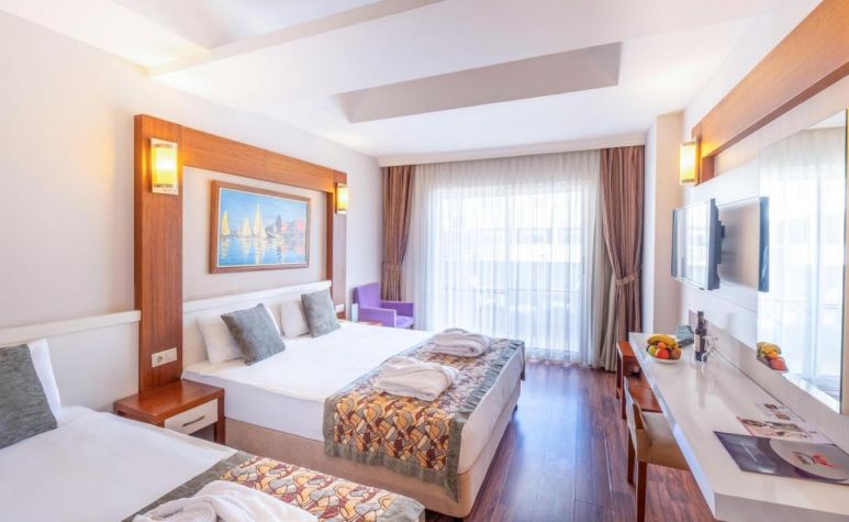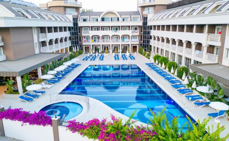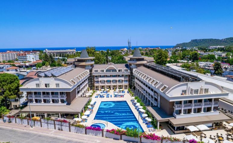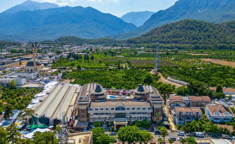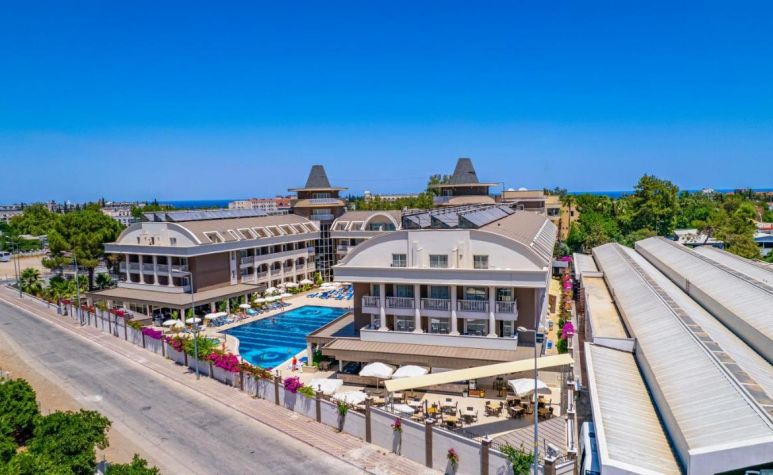 Намира се на 600 м от брега на морето, на 45 км от центъра и на 55 км от летището в Анталия. Хотела заема площ от 6 000 м2.