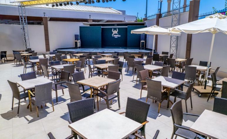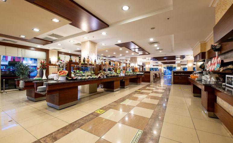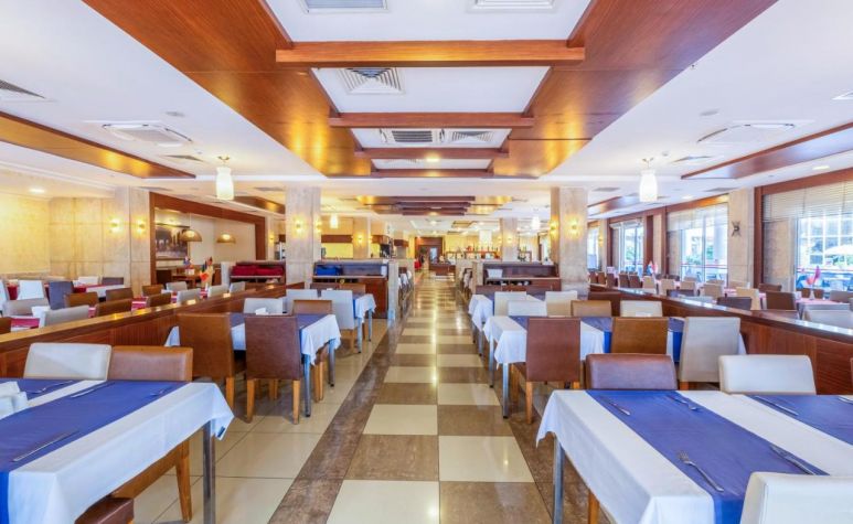 Основен ресторант, 2 открити басейна (350 и 97 кв.м), 2 закрити басейна, анимация, амфитеатър, дискотека (безплатно), обмен на валута, зала с телевизия, зала с игри (безплатно), магазини, конферентна зала (250 човека), паркинг, турска баня, сауна, фитнес център, дартс, тенис на маса, безжичен интернет в лобито на хотела