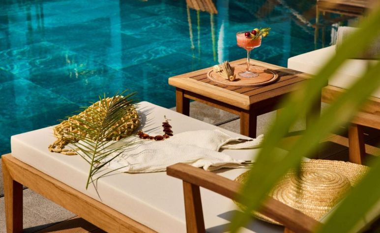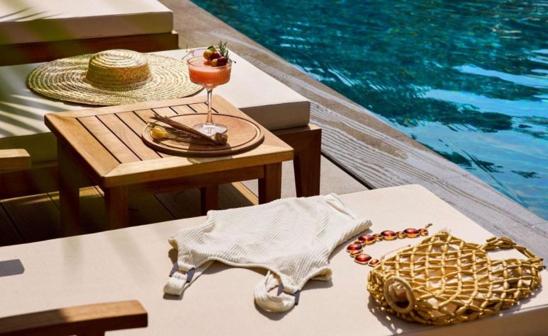 Собствен, пясъчно-чакълест (препоръчва се носене на аква обувки). Чадъри, шезлонги и матраци на плажа и при басейна – безплатно. Плажни кърпи – безплатно.