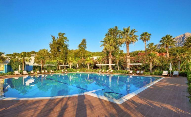 Намира се на 70 км. от летище Анталия, на 18 км. от центъра на Кемер, на брега на морето. Общата площ на хотела е 120.000 м2, напълно реновиран през 2023г.