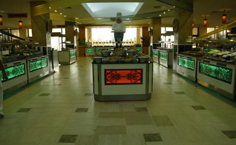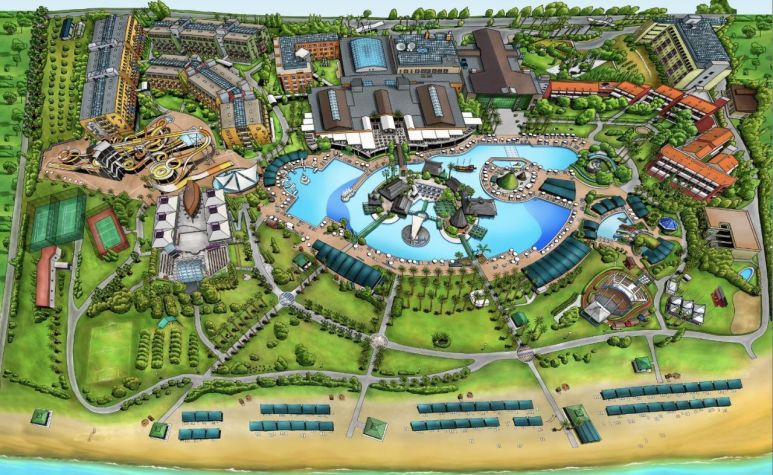 Основен ресторант, 3 а-ла-карт ресторанта - турски, азиатски, италиански (1 безплатно посещение за 7 нощувки престои с предварителна резервация) 6 бара, дискотека, 2 открити басейна, 1 детски басейн, водни пързалки за деца и възрастни, мини клуб (4-12г.), мини дискотека, конферентна зала.