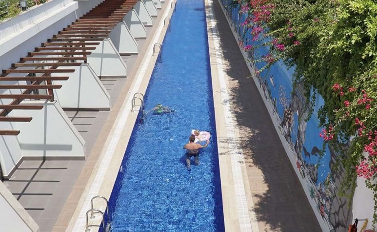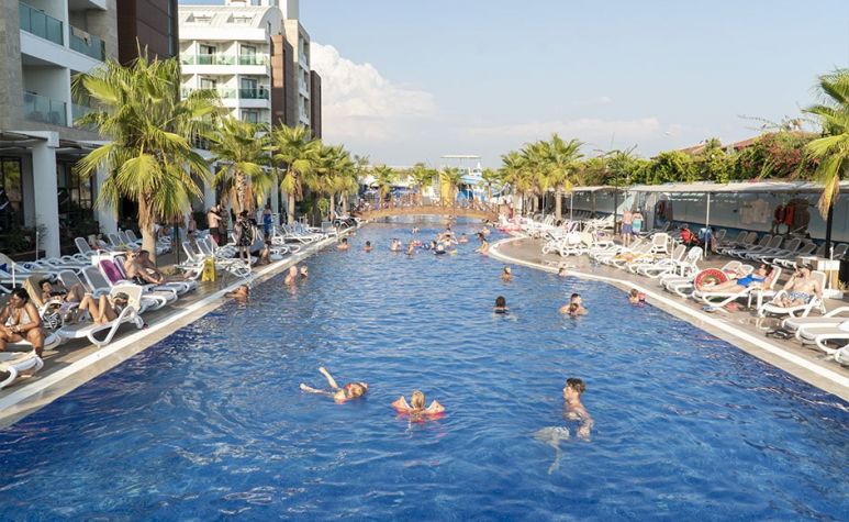 Намира се на 50 км. от летището в Анталия, на 17 км. от Манавгат, на 550 м от пътя от собствения му плаж. Построен през 2013 г., с обща площ 10.000 м2.