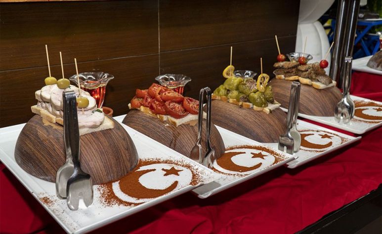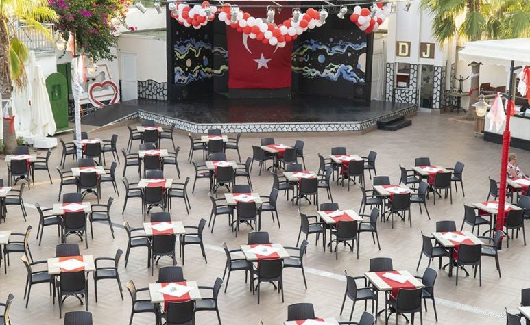 Основен ресторант с капацитет 450 места, външен ресторант - 250 места, снек бар, 2 Ала карт ресторанта -рибен и турски - с предварителна резервация. Лоби бар, бар на плажа, сладкарница, дискотека, 2 открити басейна и 1 закрит.