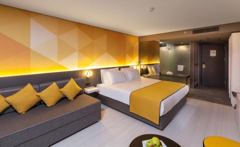 климатик, баня с вана или душ,сешоар, балкон ,мини-бар, телефон, телевизор, ел. чайник, набор за кафе/чай,сейф (безплатно), WiFi интернет (безплатно), room service (платено), смяна на спално бельо - 3 пъти седмично, почистване на стаята - ежедневно, под - ламинат.