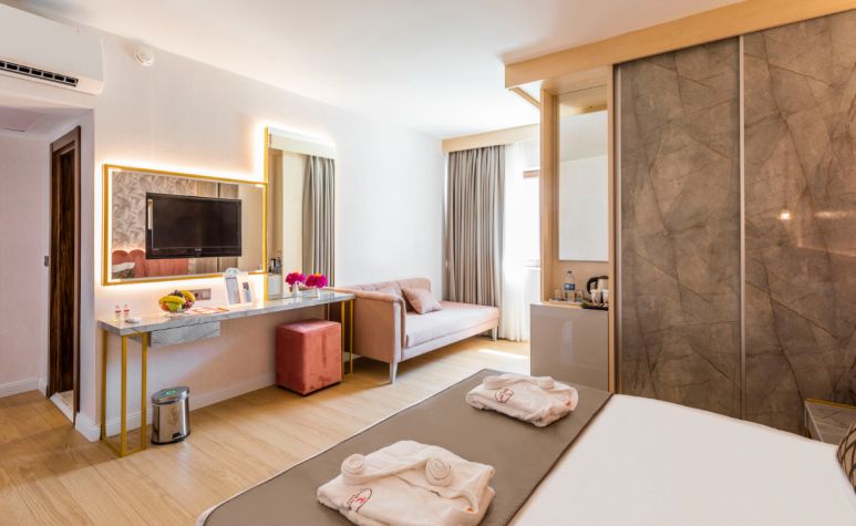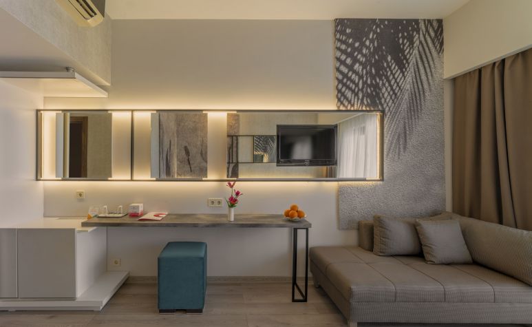 Стаи в основна сграда Main Building: 84 стаи Standard room (29 м2); 47 стаи Duplex rooms (44 м2) двуетажен мезонет, на първия етаж има две единични легла, а на втория спалня, с обща баня и тоалетна и балкон.