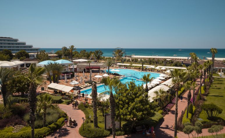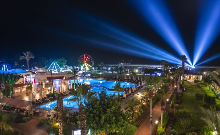 Основен ресторант, диетичен и вегетариански бюфет, 3 снек ресторанта, 3 а-ла-карт ресторанта (рибен, мексикански, китайски - с предварителна резервация и срещу доплащане), 8 бара, 3 открити и закрит басейн (отопляем през зимния сезон), дискотека, сладкарница, аквапарк с 14 водни пързалки (7 за възрастни и 7 за деца), лунапарк, мини зоопарк, СПА център, магазини, 3 конферентни зали, Wi-Fi.